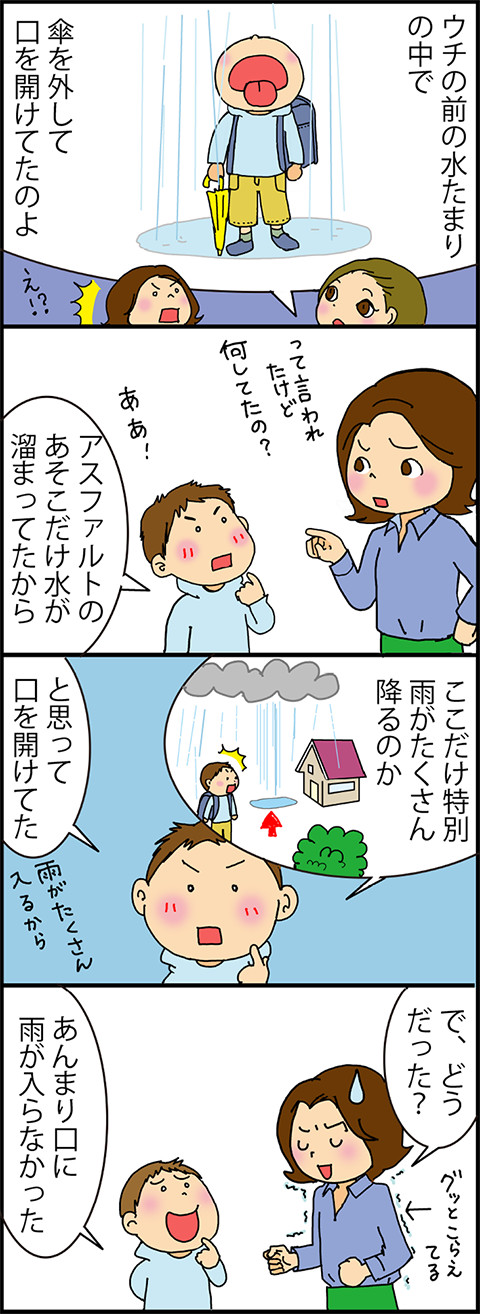【育児あるあるマンガ】好奇心は大切だけど 育児・子育て そこに集中して降ったわけじゃないの! マンガ:齊藤 恵 プロフィール 齊藤恵 マンガ家イラストレーター赤ちゃんの遊びBOOK(シリーズ5冊)、NHK Eテレ すくすく子育て 愛情が伝わる!叱り方ほめ方関わりことば26などの書籍のマンガ、イラストを担当 共感した 学びがあった 分かりにくい 育児・子育て 子育て・教育Q&A 【小学生】2018年から学校での英語教育はどう変わるの? 【高校生】問題が解けなかったときに、答えを写すことに意味がありますか? 【小学生】漢字二字の熟語の構成(組み立て)を見分けることができません。見分ける方法はありますか?