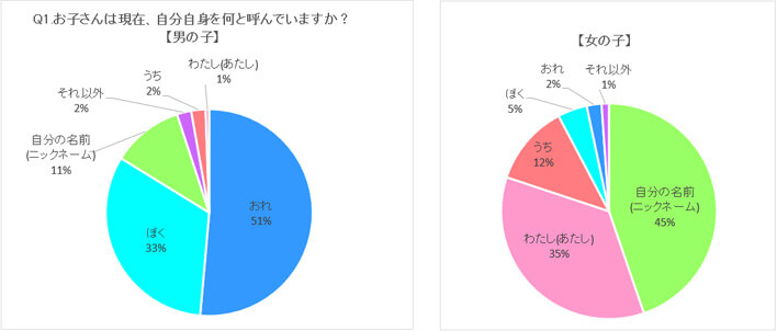 今回のアンケートでは、お子さんの自分の呼び名について聞きました。気になる子どもの「呼び名」事情をアンケート結果から見てみましょう。