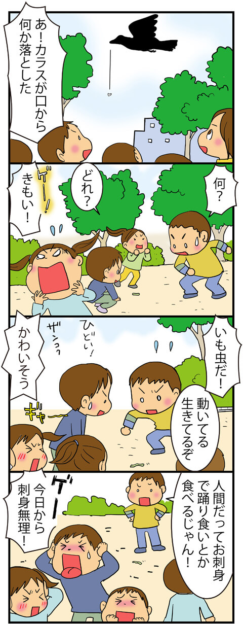 【育児あるあるマンガ】僕はカラスの味方です 育児・子育て カラスの味方は少数派だね マンガ:齊藤 恵 プロフィール 齊藤恵 マンガ家イラストレーター赤ちゃんの遊びBOOK(シリーズ5冊)、NHK Eテレ すくすく子育て 愛情が伝わる!叱り方ほめ方関わりことば26などの書籍のマンガ、イラストを担当 共感した 学びがあった 分かりにくい 育児・子育て 子育て・教育Q&A 【小学生】2018年から学校での英語教育はどう変わるの? 【高校生】問題が解けなかったときに、答えを写すことに意味がありますか? 【小学生】漢字二字の熟語の構成(組み立て)を見分けることができません。見分ける方法はありますか?
