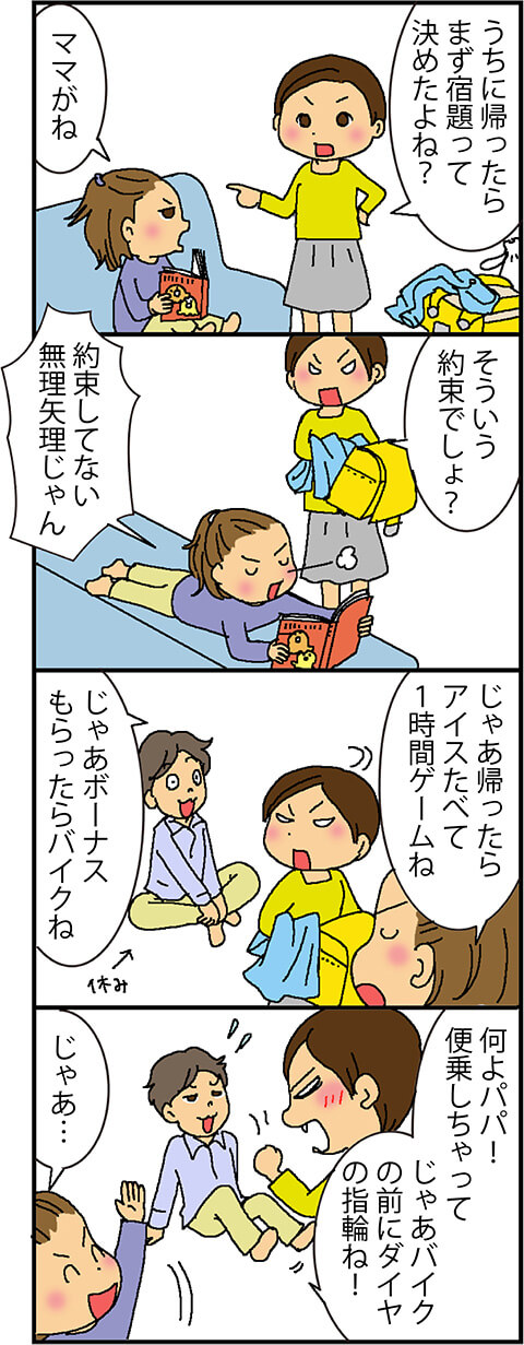 【育児あるあるマンガ】約束じゃなくてそれは… 育児・子育て 似たもの家族 マンガ:齊藤 恵 プロフィール 齊藤恵 マンガ家イラストレーター赤ちゃんの遊びBOOK(シリーズ5冊)、NHK Eテレ すくすく子育て 愛情が伝わる!叱り方ほめ方関わりことば26などの書籍のマンガ、イラストを担当 共感した 学びがあった 分かりにくい 育児・子育て 子育て・教育Q&A 【小学生】2018年から学校での英語教育はどう変わるの? 【高校生】問題が解けなかったときに、答えを写すことに意味がありますか? 【小学生】漢字二字の熟語の構成(組み立て)を見分けることができません。見分ける方法はありますか?
