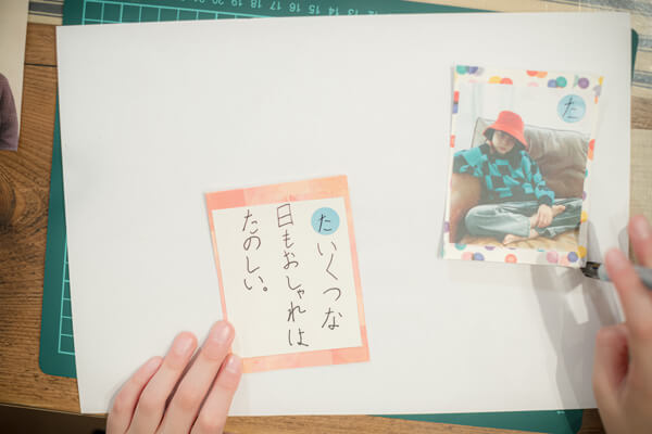 STEP2 【絵札】台紙に写真を貼り、頭文字をつける
