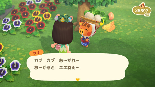 ローン返済の一つの方法となるのは「カブの運用」。「あつ森」では毎週日曜日にカブ売りのキャラクターがやってくるのですが、このカブは曜日ごとに値段が上下するのです。うまくタイミングをつかめば資産を数倍に増やすことも可能。一気にローン返済の道筋が立つことになります。