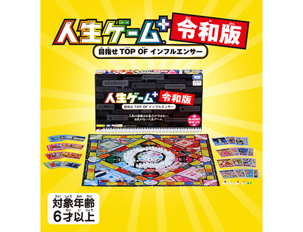 2019年に発売されたテーマ版「人生ゲーム+令和版」(生産終了)で、競うのはお金ではなくフォロワーの数。さらにスタートもゴールもないという画期的な作品。「人生は一本道ではなく、好きなルートを選び自分で切り開いていくもの」という、今の価値観を反映しています。