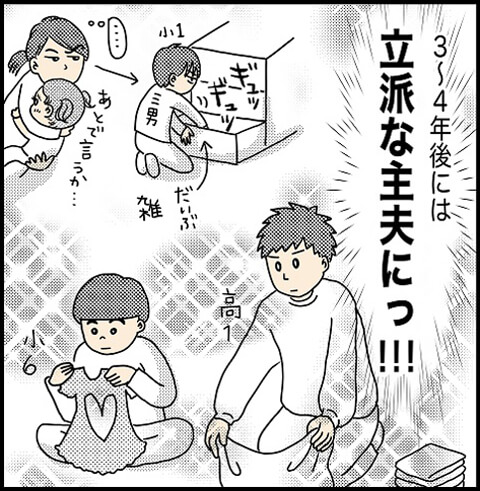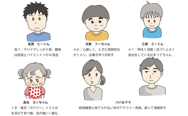 4人の子どもを子育て中のMOTOKOさん家の日常を描いた4コマ漫画。
