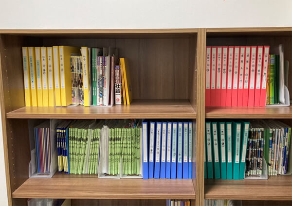 塾が本格的に始まる5、6年生になったら、収納スペースを増やしましょう。ファルボックスでは足りなくなるため、棚ごとに教科を分けるのがおすすめです。関係する参考書や辞書をまとめて整理しておけば、必要なものが一目瞭然になります。