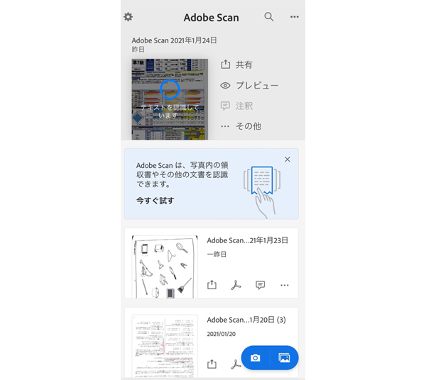 整理しきれないプリントはとりあえず「Adobe Scan」でスキャン。時間があるときに分別すればOKです。