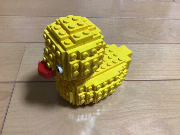 「150ピースで家にあるものを作る」という企画で作ったもので、お風呂に浮かべて遊ぶゴム製のアヒルのおもちゃをモデルにした作品です。家に、大英博物館限定のアヒルのおもちゃがあったことから着想しました。