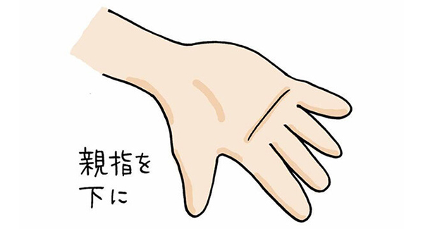 バトンを受け取る次走者は、バトンをしっかり受け取れるよう手のひらで大きな面を作ることを意識してください。そのためのコツは、親指を下に向けて、手を大きく開くこと。面を大きくすることで、バトンがすり抜けてしまうことを防げます。