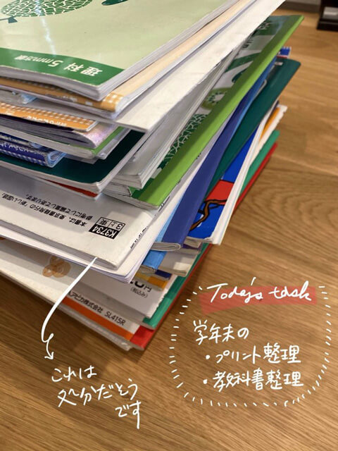 学年末のプリント&教科書整理の結果。処分するものが決まり、机周りもスッキリしました。