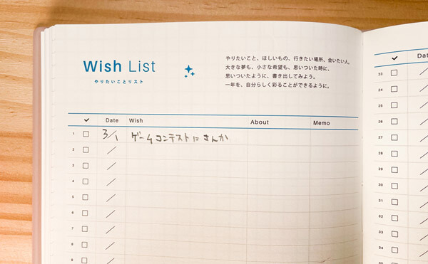 Wish List(やりたいことリスト)がある手帳も。「No.534 torinco 8 ドーンピンク」(高橋書店)
