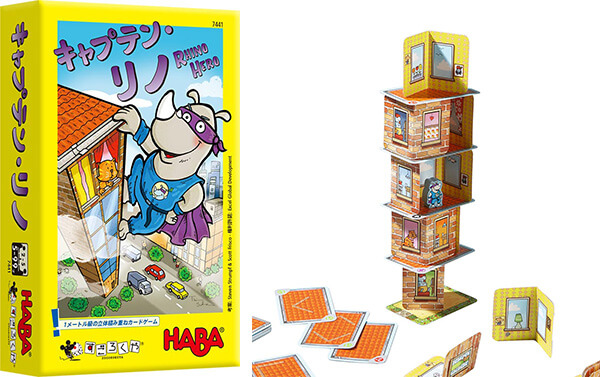 慣れれば1メートル以上の高さに積み上がり、重ねるときにドキドキしたり、リノカードなどの特殊カードの効能によってライバルにいじわるしたりと、たいへん盛り上がります。崩れるときも、紙製なので大きな音がしないというのもうれしいポイントです。