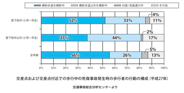 「7歳の壁」とも言われていますが、入学後の1年生は歩行中の交通事故が全年齢においても一番多く、さらにその多くは登下校中に起きています。