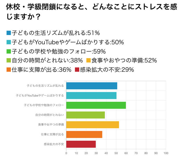 休校・学級閉鎖で「食事やおやつの準備」にストレスを感じる保護者は半数以上