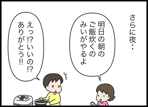 お弁当作りに翌朝のご飯の準備、さらにはリンゴの皮むきまで! 料理スキルを始めとした家事スキルがどんどんアップしたのは、毎日コツコツと続けてきたからなのでしょう。みいちゃんのやる気を尊重しながら、無理せずゆっくり続けてきたことも良かったのかもしれませんね。