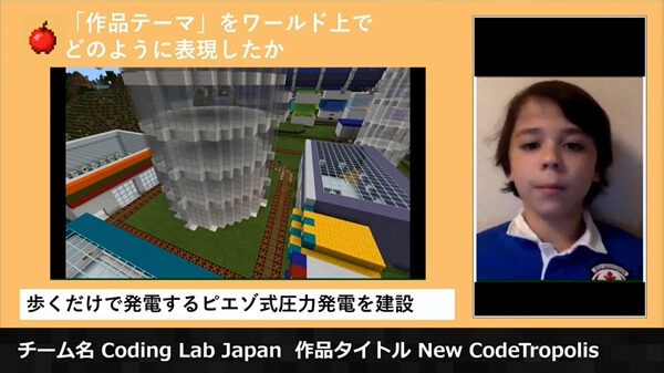 Coding Lab Japan(7~14歳・東京都ほか)の作品「New CodeTropolis」。クリエイティブ賞を受賞。