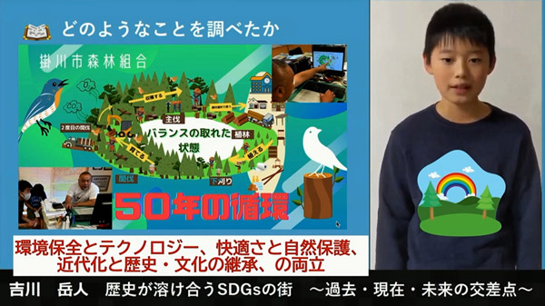 吉川岳人さん(小4・静岡県)の作品「歴史が溶け合うSDGsの街~過去・現在・未来の交差点~」。農林中央金庫賞を受賞