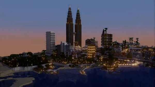 ヒートアイランド現象を防ぐため、地下の「世界一クールな」道路をつくった、マレーシアと東京に住む4人のチーム。「チーム名・逸般人の《逸》は逸脱の意味。私たちは学校に行きづらい、でこぼこのある子どもたちです。そのメンバーで思っていた以上の作品を完成させることができました。Minecraftのおかげです」(チーム逸般人・そうまめさん)。