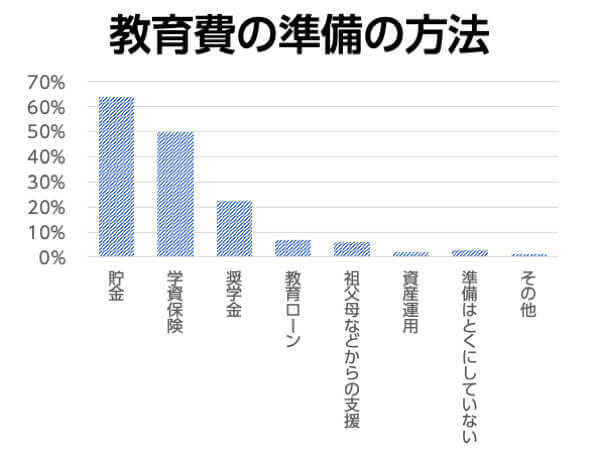また、どのように教育資金を準備するかを聞いたところ、1位が貯金、2位が学資保険、3位が奨学金、という結果に。