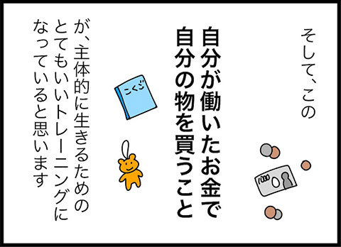 「自分が働いたお金で自分の物を買う」だけではなく、「自分で選択する」ことが大事だというえみさん。間違えたり失敗したりしながら学ぶことで、生きるための力が身に付いていくのでしょう。買い物は、そういった学びがたくさんできる絶好の機会なのかもしれませんね。