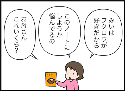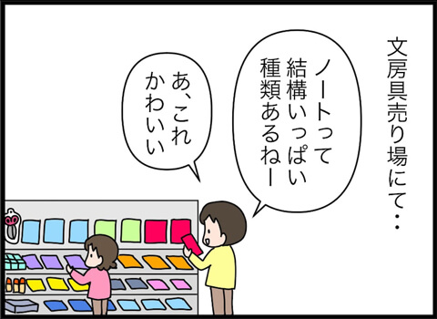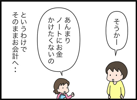 「お金の教育を1年間継続したら小学1年生がとんでもなくすごいことになった話」第9回目です。前回の買い物では、お財布の中身と相談しながら安いお菓子を選んだみいちゃん。今回は、学校で使うノートを買いに来たようです。