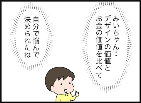デザインの価値とお金の価値を比べる。大人でも難しいことですよね。みいちゃんがいろいろなことを考えながら買い物ができるようになったのは、失敗も含めたさまざまな経験をしたからなのでしょう。