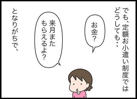 予算内で買い物をする経験ができる定額のお小遣い制。しかし、毎月自動的にお金をもらえるという形では、「お金の本当の大切さ」には気付けないのかもしれませんね。金額の設定も悩むところでしょう。
