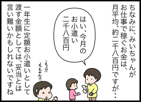 「お金の教育を1年間継続したら小学1年生がとんでもなくすごいことになった話」第11回目です。予算を考えたりデザインとお金の価値を比べたり、いろいろな経験ができる買い物。えみさんのご家庭では、「自分で稼いだお金で買い物をする」という形を取っており、「親が買ってあげる」という形ではできない学びがたくさんあります。それでは、定額のお小遣い制の場合はどうなのでしょうか?