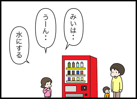「お金の教育を1年間継続したら小学1年生がとんでもなくすごいことになった話」第13回目は、みいちゃんの成長を感じるエピソードをご紹介します。ある日、外出先で飲み物を買うことになったえみさん一家。さて、みいちゃんは何を選んだのでしょうか?