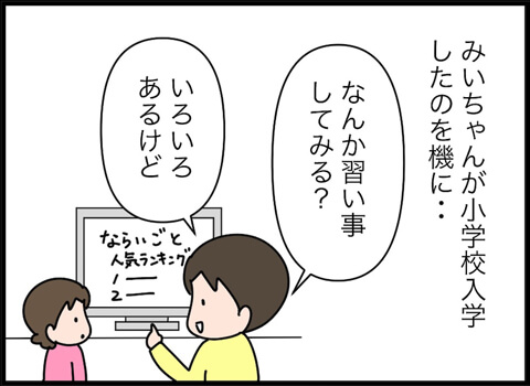 「お金の教育を1年間継続したら小学1年生がとんでもなくすごいことになった話」第14回目からは「習い事」のお話です。みいちゃんは、現在3つの習い事をしているそう。さて、どんなことに取り組んでいるのでしょうか?