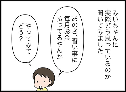 「お金の教育を1年間継続したら小学1年生がとんでもなくすごいことになった話」第19回目。3つの習い事を続けるために毎月500円を払うことにしたみいちゃん。しばらく続けた後、えみさんはみいちゃんの気持ちを聞いてみることにしました。