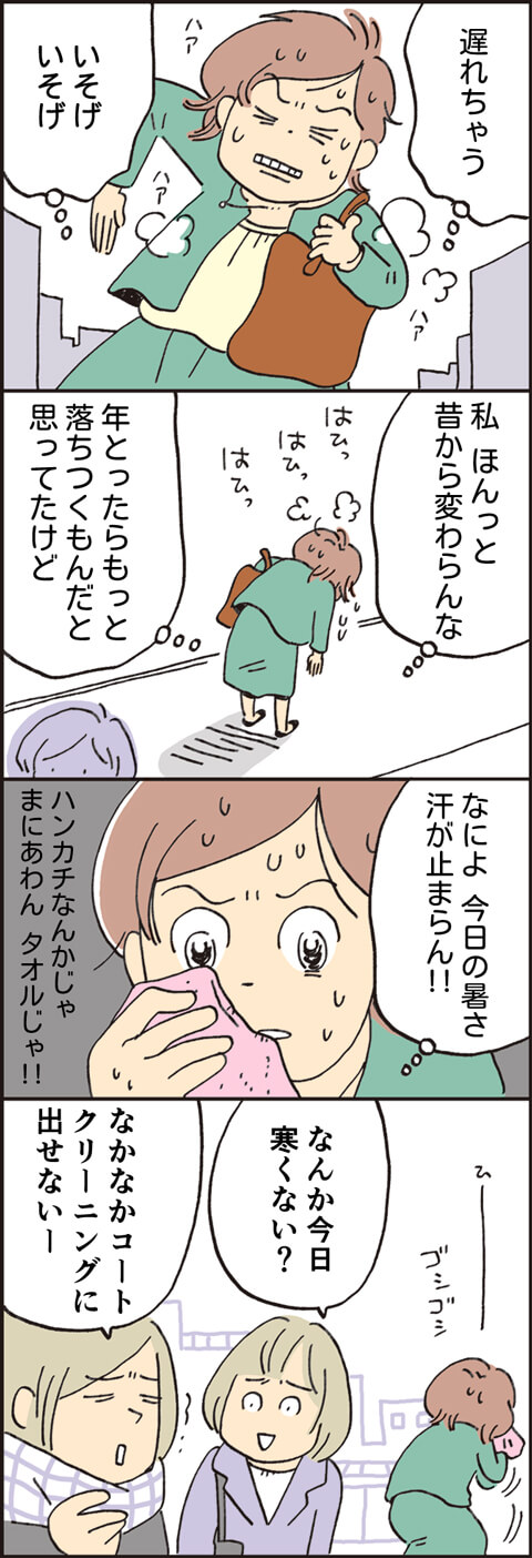 「ドッ」とはいかに……? 働きママンが繰り出した更年期の洗礼へのまさかの解決法とは? 次回「突然のアレに顔面蒼白ピンチ!」でご確認ください。同じような経験をしたかたは、背中に冷や汗かいちゃうかも……。