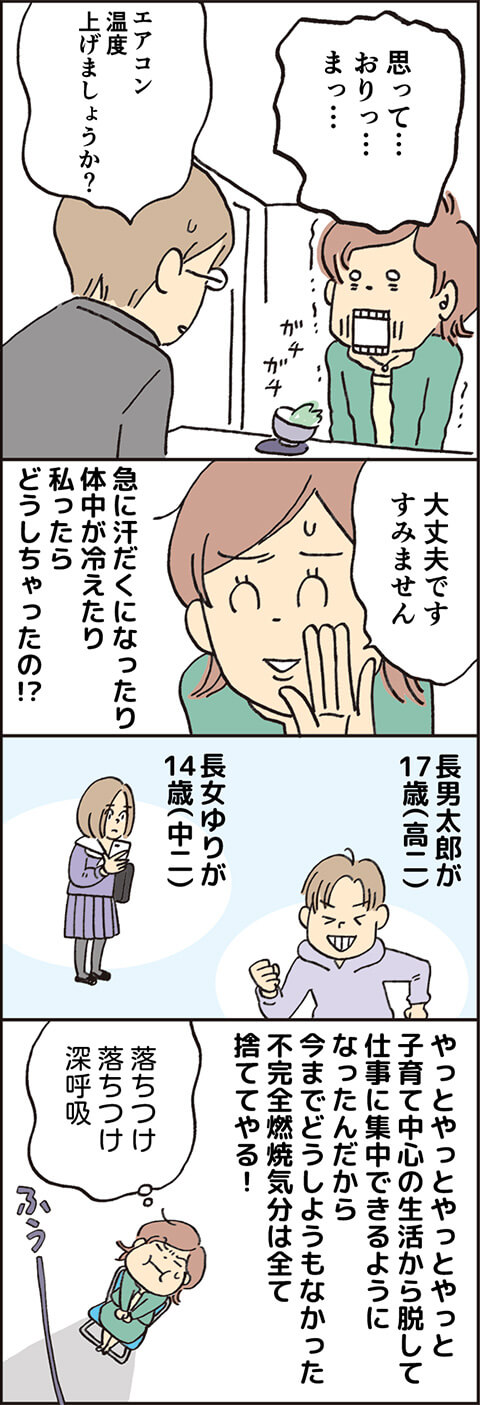 次話:【働きママン令和編 更年期もやってきた!2】突然のアレに顔面蒼白ピンチ!\ほかのお話はこちら/