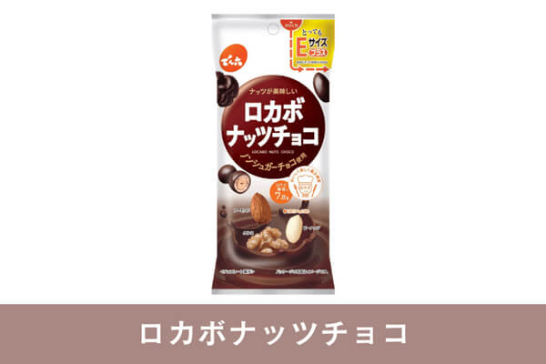 最初にご紹介する糖質10g以下のおやつは、ピーナッツ・アーモンド・くるみの3種類のナッツをノンシュガーチョコレートでコーティングした【ロカボナッツチョコ】。