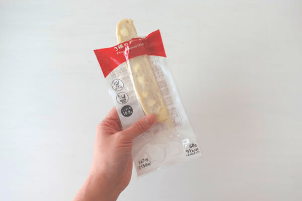 最後にご紹介する糖質10g以下のおやつは、1本で3種類のチーズが楽しめる【サラダチキンバー 3種のチーズ】(ファミリーマート)。糖質は1.1gで1本あたり91kcal。