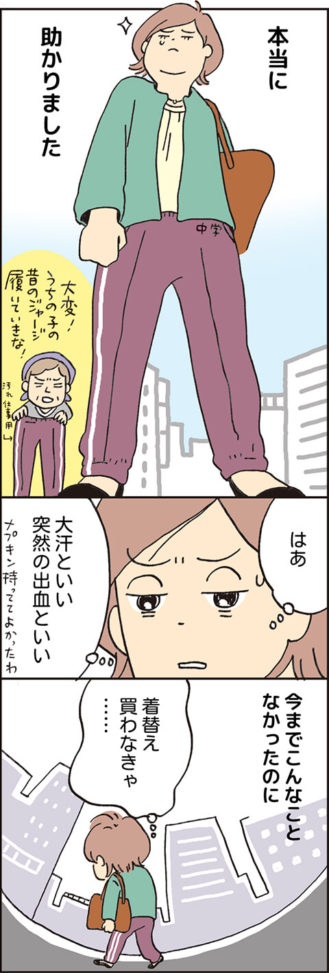商談を終えた直後の働きママン・圭子を襲った予期せぬ「ドッ」。その正体は、長い付き合いのアイツだったようです。突然のピンチをどう乗り切る? 48歳・更年期、いろいろあります。