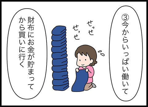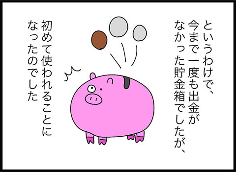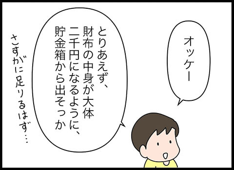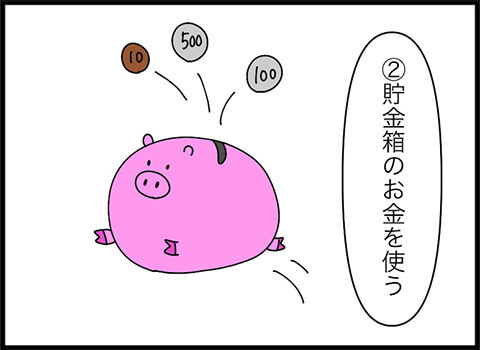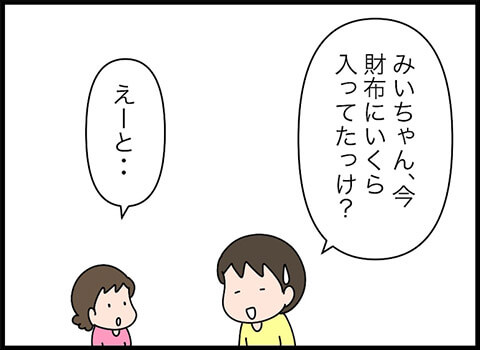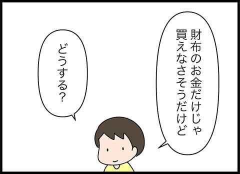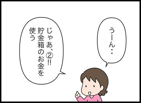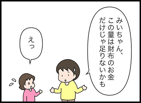 欲しいものがありすぎて、お財布にあるお金だけでは足りなくなってしまったみいちゃん。えみさんからいくつか方法を教えてもらい、自分で決めて貯金箱からお金を出すことにしました。ちなみに「自分で決める」というのは、お金の教育においてとても大事なことだそうですよ。