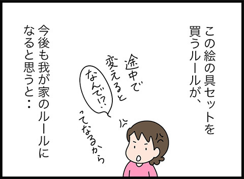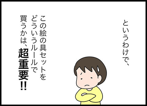 自分の意志やタイミングで購入する文房具とは違い、学校から購入を求められる絵の具セット。「必要なもの」という意味では同じですが、考え方は違いますよね。きょうだいも含め、これから先ずっと家庭で守っていくルールになるからこそ、えみさんは悩んでいたのです。