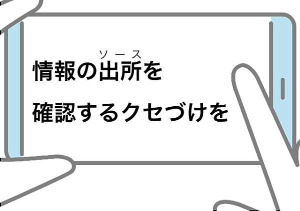 ネット上の情報は玉石混交で、有益なものもあれば、事実に基づかないものもたくさんあります。信ぴょう性を見極めるには、ソース、つまり情報の出所の確認をすることが欠かせません。発信源が信じていいところかどうか、いったん落ち着いて検証するクセをつけることが必要です。