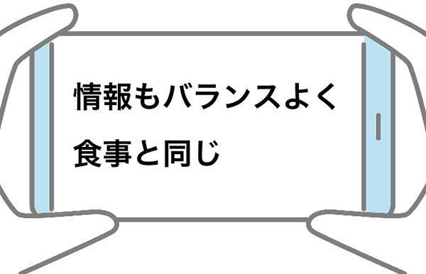 情報が偏らないようにするためには、いろいろな情報を意識して取りにいくことが大事です。食事のバランスを心がけるように、情報もバランスを心がけましょう。