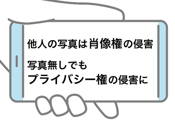 肖像権は誰もが持っている権利です。友人と写った写真を勝手に公開すると肖像権の侵害ですし、そもそも載せたくない人もいるので、友人関係にも影響します。また、子どもの写真を親が勝手に投稿するのもNGです。人の写真を載せるなら許可を取る、モザイクを入れたり消したりするアプリを利用する、と覚えておきましょう。