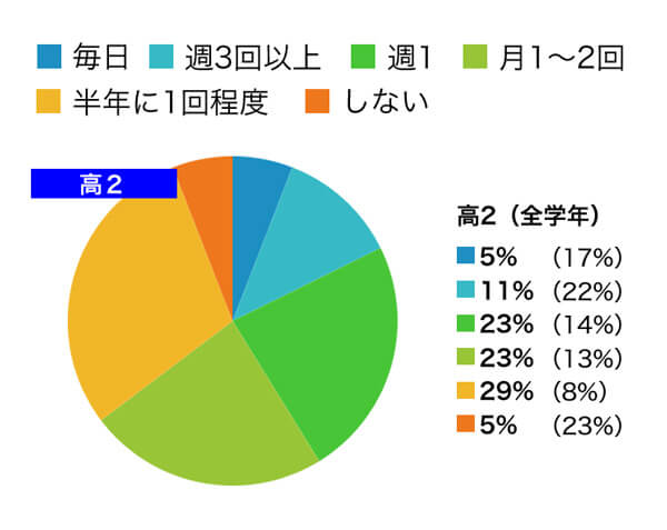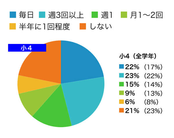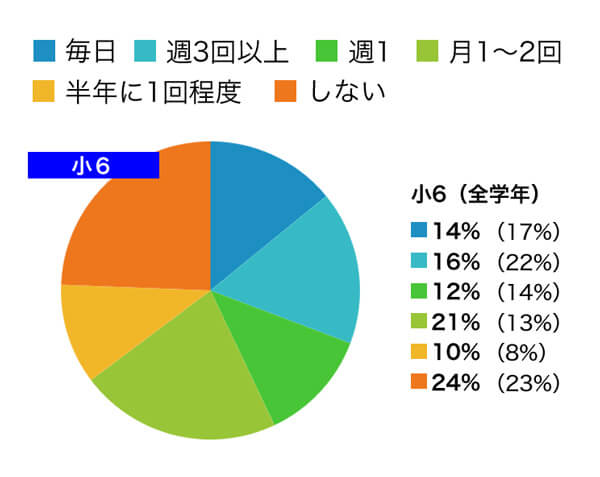 小学生は過半数が週1回以上、小1~小4と小5・小6でやや差が見られる