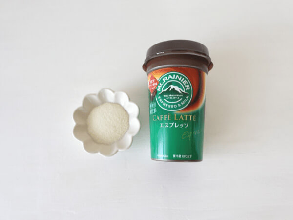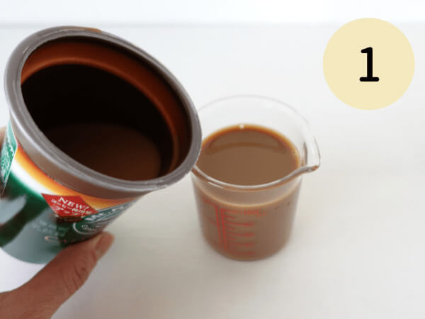 1.耐熱容器にマウントレーニアコーヒーの中身を半分移す。120mlが目安。