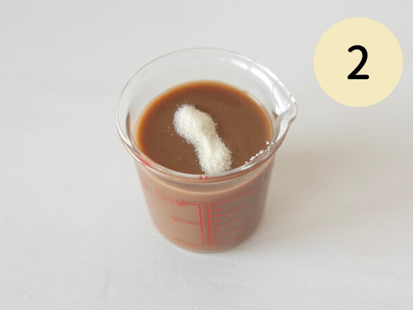 2.移したコーヒーにゼラチンを入れ、軽くかき混ぜてふやかす。