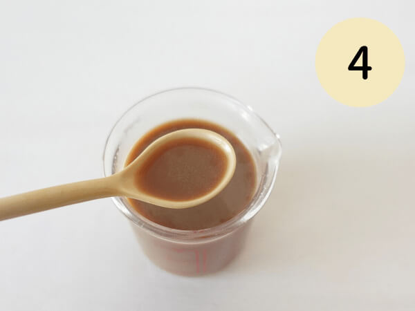 4. ゼラチンの粒が見えなくなるまで、温めたコーヒーを優しくかき混ぜる。