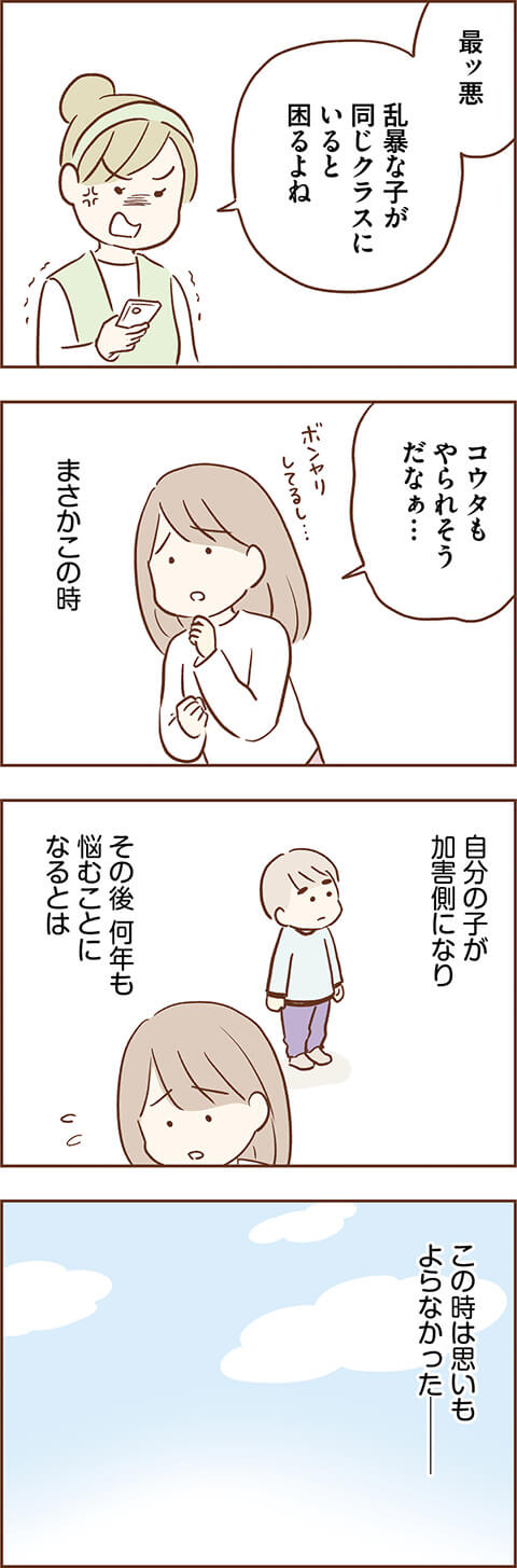 マイペースでおっとりキャラ。いじめの対象にならないか心配になるほどだったコウタが、加害児になっていった経緯とは? そして、母・カンナはどうコウタに言い聞かせ、徒労に終わり、追い詰められていったのかーー次回以降も息が苦しくなるようなストーリーが続きます。