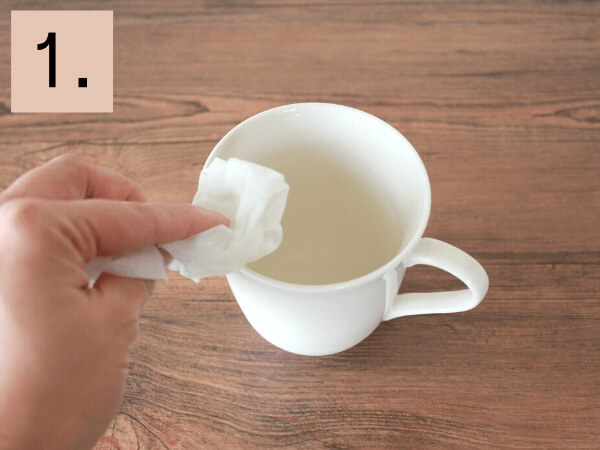 1.マグカップに薄く油をぬる。生地がカップにこびりつくのを防いでくれます。