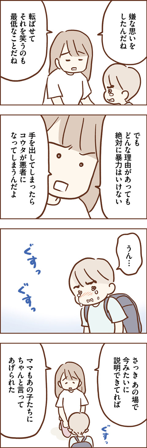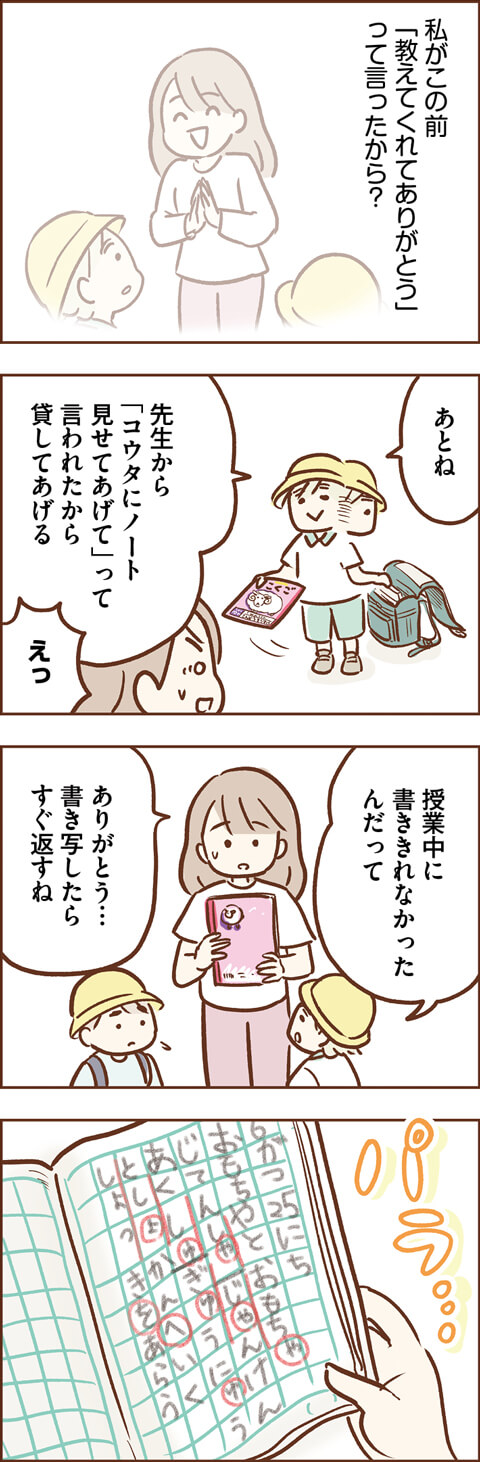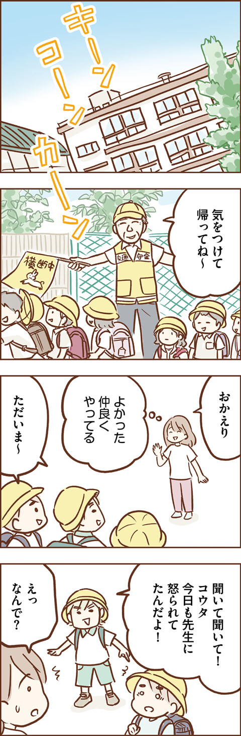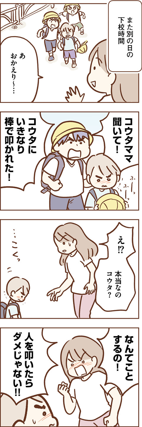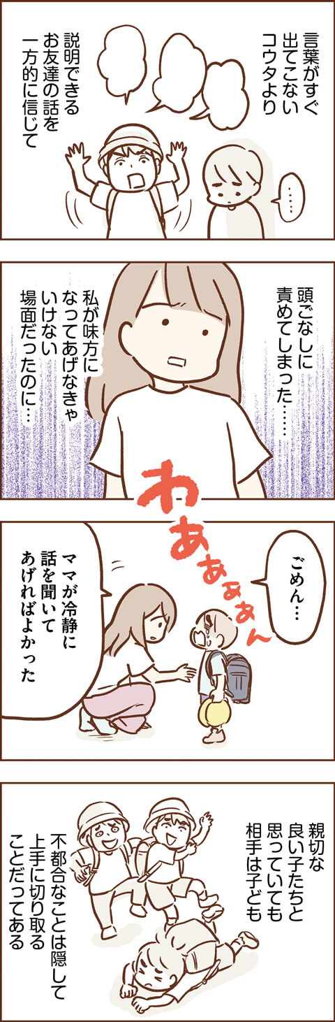 コウタの問題行動を教えてくれるクラスのお友達。同級生とくらべて、説明がうまくできないコウタをつい問い詰めてしまいがちな母カンナ。そんななか、下校時間にまたもや事件がおこります。コウタの行動の裏には、なにがあるのでしょうか……。