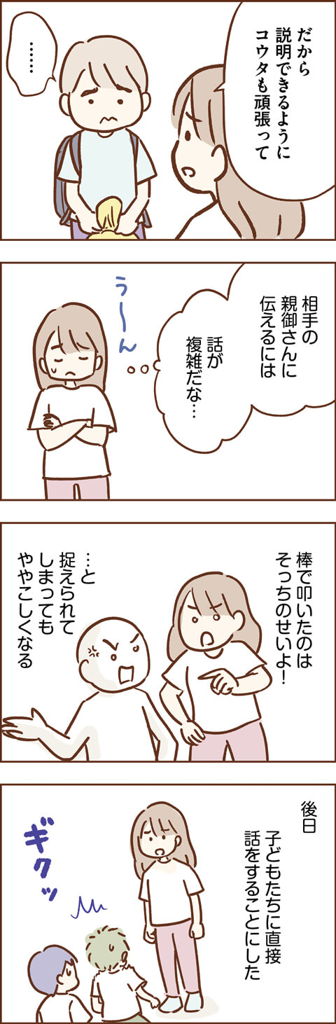 コウタがお友達をたたいてしまったのは、嫌なことをされたことが理由でした。子ども同士の問題にどこまで介入するべきか、難しさを感じるようになったカンナ。次回も気になります!