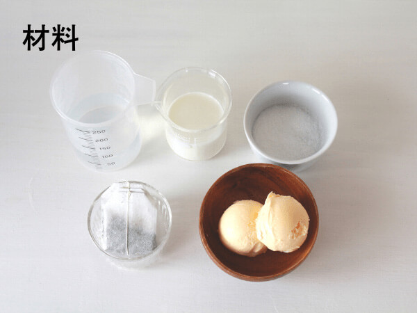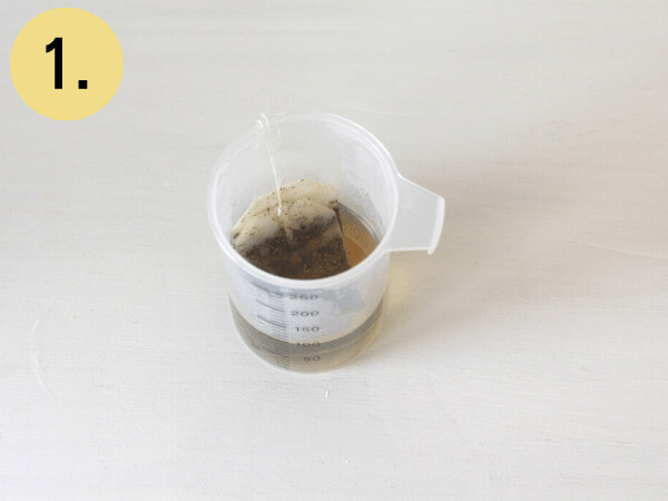1. 計量カップにほうじ茶ティーバッグ2つ入れ、熱湯100mlを注いで5分蒸らす。