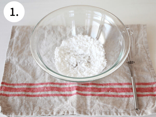 1. 片栗粉に砂糖を入れ、泡だて器でざっと混ぜておく。